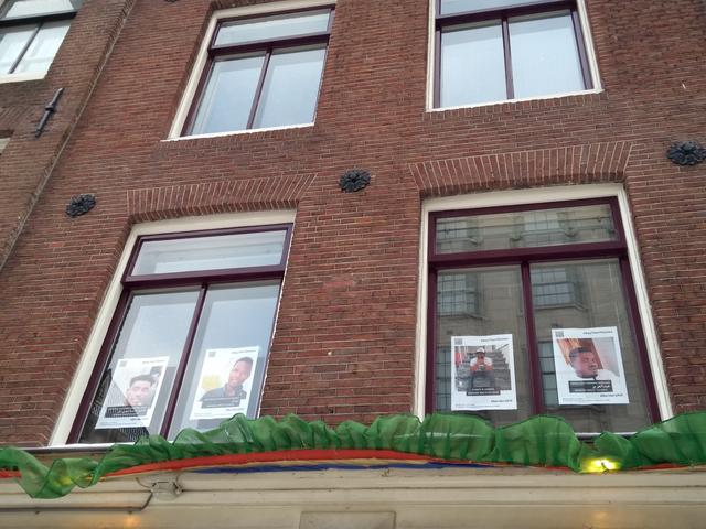 Er zijn ook spandoeken opgehangen in Amsterdam: