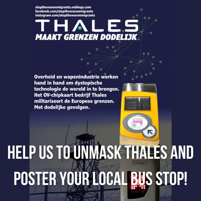 Thales is not harmless: it is a company that destroys lives in the search for ever more profits. These kinds of companies need to be held accountable for the blood on their hands and destroyed. Fight Fortress Europe and it profiteers, stop the war on migrants!