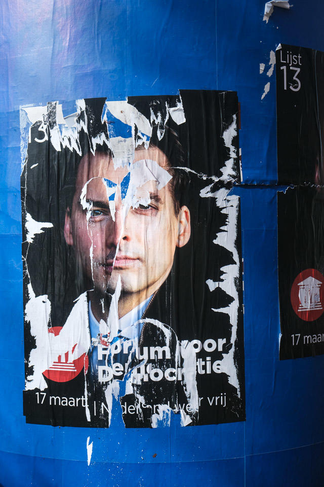 Today many posters for political parties appeared in tram and bus stops in Den Haag, including posters from Forum voor Democratie. Hours after their posters were put up they are already gone!