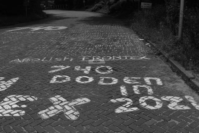 Activisten van de Vrije Bond Utrecht en Extinction Rebellion Amersfoort hebben op de Wereldvluchtelingendag bij de Bernard kazerne in Amersfoort 740 mensen herdacht door 740 strepen te krijten bij de toegangsweg van de kazerne. Deze mensen zijn dit jaar tijdens hun vlucht verdronken in de Middellandse Zee.