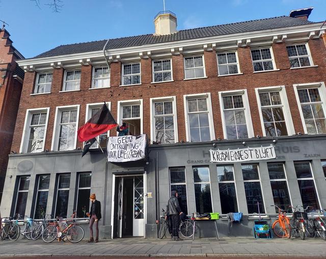We, a group of homeless international students and others who need a home, squatted the Heerenhuis at Spilsluizen in Groningen. In the past, the house functioned as a christian youth organisation, and it hosted two different restaurants with meeting and event rooms. At the beginning of the pandemic the famous real estate owner Joshua Camera, under the name Stichting Valquest, bought the building. Shortly after that the restaurant Heerenhuis quit, and the huge building has been empty for 2 years until we moved in. Camera is known in Groningen and beyond, for demanding too high rent, illegal management costs and intimidation. In 2019 he won the Rood Huisjesmelker van het jaar, and his shady reputation was confirmed by the media (Boos, Sikkom and SBS6). Camera owns hundreds of properties under different names, such as Pex Real Estate. In the meantime, the building of the Heerenhuis has been left to deteriorate: breaks in windows, water leaks, moist places... The neighborhood also does not like Camera. His plans to make 'luxurious' student housing didn't get a permit from the municipality. Some parts like the attic in the back stem from the 17th century and got monumental status. At the Ossenmarkt side of the building, are many lawyers and office, and at the other side people who have been living there for decades, and a homeless shelter. So, contact with the neighbors for us has been positive so far. Our group moved from Zuiderkuipen, the squat where 'social' housing corporation Patrimonium basically kicked us on the street in the middle of a pandemic in winter.