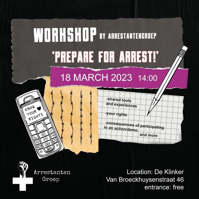Any action or demonstration carries the risk of arrest. In this workshop we want to provide tools and experiences in how to prepare for this. We will do an interrogation training, explain practicalities and your rights, and answer questions concerning arrest and consequences of participating in an action or demo.
