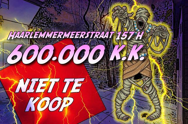 Zaterdag,10 februari 2024 bij Haarlemmermeerstraat 157 h, flitsactie 162 tegen de immer doorgaande uitverkoop van onze sociale woningen.