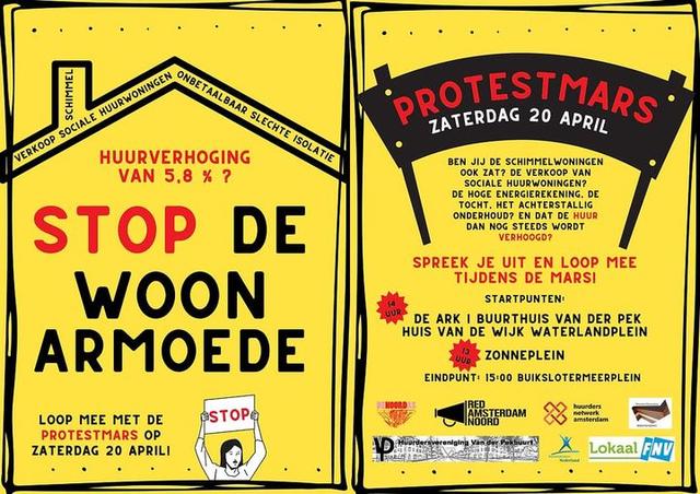 Bewonersorganisaties komen in actie om aandacht te vragen voor het enorme achterstallig onderhoud, de aangekondigde huurverhogingen en de doorlopende verkoop van sociale huurwoningen. De mars vertrekt om 14:00 uur vanaf verschillende startpunten in Amsterdam-Noord en eindigt om 15:00 uur op het Buikslotermeerplein met een manifestatie en sprekers. Meer info op de website van Noordas.