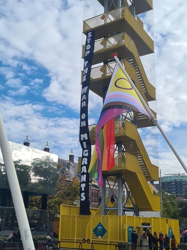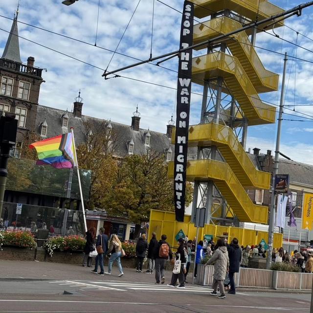 Today we were in front of the Binnenhof, the central political place of the Dutch state. This is the place where, with the current racist far-right government, support for Frontex continues unabated. That is why we've send a clear message: