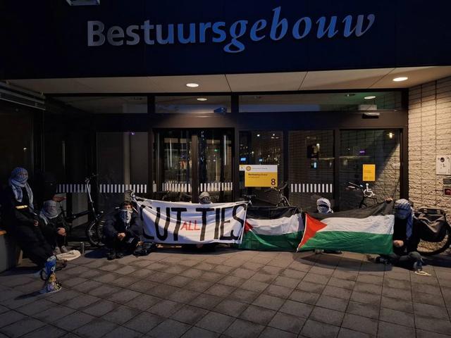 We have blocked the “bestuursgebouw “ of the UU in protest of the university's continous complicity of occupation and apartheid.