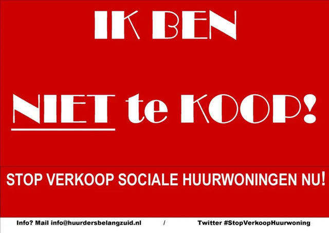 Actiegroep Niet Te Koop zorgt voor spandoeken, affiches, stoepkrijt en wat niet meer.