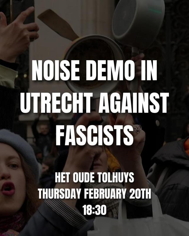 Come Thursday evening February 20th at 6.30pm to the Oude Tolhuys and let everyone know with lots of noise that we do not tolerate fascists in Utrecht!