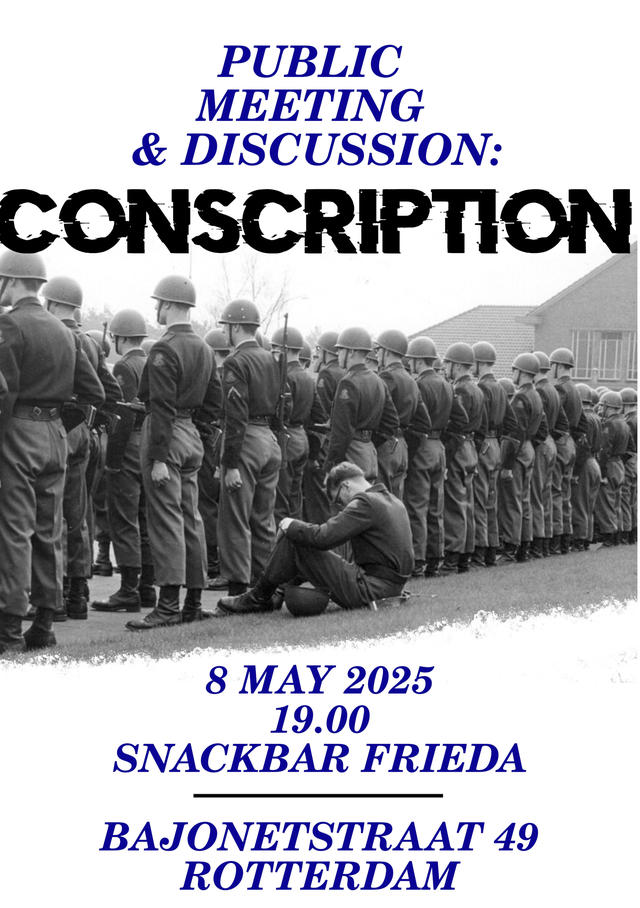As anti-militarists, we oppose such measures, but why? Come join our conversation about conscription to discuss this. Bring your questions and announcements, your doubts and determination, your visions for the future or your stories from the past.