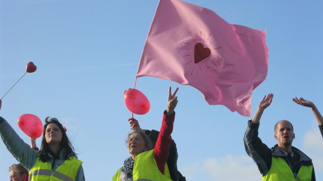 Iedere eerste zondag van de maand loopt Occupy Rotterdam een protestmars van Beursplein naar het detentiecentrum op het vliegveld.