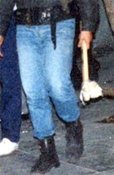 in the Foto the new Minister Boridis in his youth member of a right wing gang attacks having an axe in his hand
