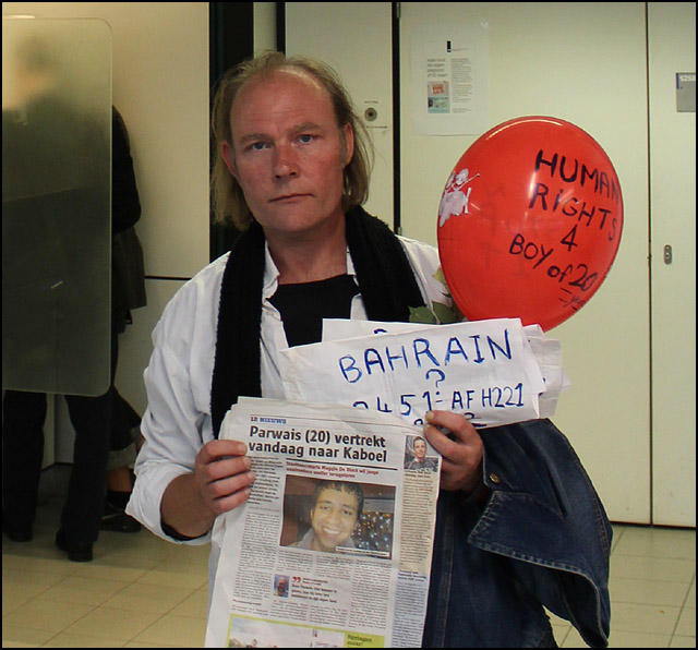 Maandag 9 juli wordt de Afghaanse Parwais Sangari vanuit België via Amsterdam naar Afghanistan gedeporteerd. Wij willen iedereen oproepen om morgen om 10.30 bij de incheckbalie te staan en zijn medepassagiers te laten weten wie er bij hem in het vliegtuig zit, en hen vragen daartegen in opstand te komen door weigeren te gaan zitten en zo het vliegtuig te verhinderen te vertrekken.