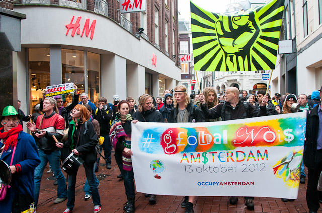De wereldwijde actiedag op 13 oktober markeert eveneens de eerste verjaardag van Occupy Amsterdam. De manifestatie op het Beursplein is dan ook meer dan een luidruchtig protest en een oproep je stem te blijven verheffen. Het is eveneens een dag om eigen ideeën en acties te delen en een leerzame dag met sprekers, een openbare vergadering en muziek van een aantal bekende en nieuwe Occupy Amsterdam artiesten.